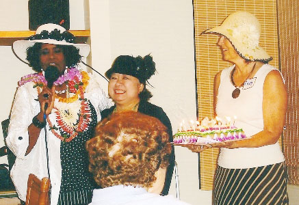 Fifty of my lady-friends came ....most of them wearing hats, it was so much fun. It was humbling to hear so many great comments about how they came to know me, etc. One story in particular I'll share with you. I was given a book about conversion from Mormonism to Christianity .... to my surprise, my name was in the book. It seems that 30 years ago when Melodyland was the place to be....the place to go....to hear the most powerful Christian speakers and singers, I learned that a young lady named Cindy had been invited the night I sang "The Comforter Has Come".... there was a special anointing....the Holy Spirit had been dealing with her, but in her heart, she had not surrendered. When I came out to sing, she seemed frustrated because of what she had been taught all her life about "blacks." However, as I sang, her heart was softened .... when the alter call was made, she came forward and has been a part of YWAM for a number of years. She is my special friend.