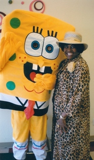 I was in a strip mall to go into a yogurt shop....and there was a huge crowd inside and outside....I wasn't sure what was going on....as I got closer, I noticed alot of kids....as I looked inside....I saw a strange looking character. "Who is that?" I asked....the answer came back from many voices in unison, "That's Sponge Bob!" I still can't believe I asked this next question, "Who is Sponge Bob?" I learned he is from a cartoon TV Show. I thought he was cute.....so I stood in line with all the other little kids to have my photo taken with him....cute, huh? I then, of course went to the computer to read about him....he seems to be a nice enough guy .